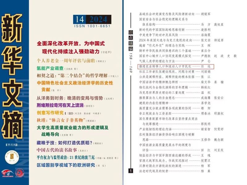 《北京行政学院学报》2024年第1期刊发的文章《人口迁移流动与城镇化发展战略任务》,被《新华文摘》2024年第14期“论点摘编”摘录。