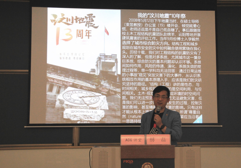 讲座开始,赫磊首先点明了此次讲座的主题——韧性城市建设,说明了在韧性城市建设中防灾减灾的重要性及其和城市规划的关系,并从四个方面具体讲述了城市综合防灾规划研究状况。赫磊对城市灾害的定义、历年来的变化、以及我国城乡防灾形势侧重点的不同进行了分析,以上海的地铁网络故障为例,从空间放大效应、人口放大效应、损失放大效应、网络放大效应四个方面论述了城市防灾的重要性。再以疫情为切入点,说明了国家在社会主义建设中对城市防灾减灾的重视。同时提出了“城市安全发展是城市经济发展的底线,完备的城市防灾体系是国民经济健康运行的基础”。