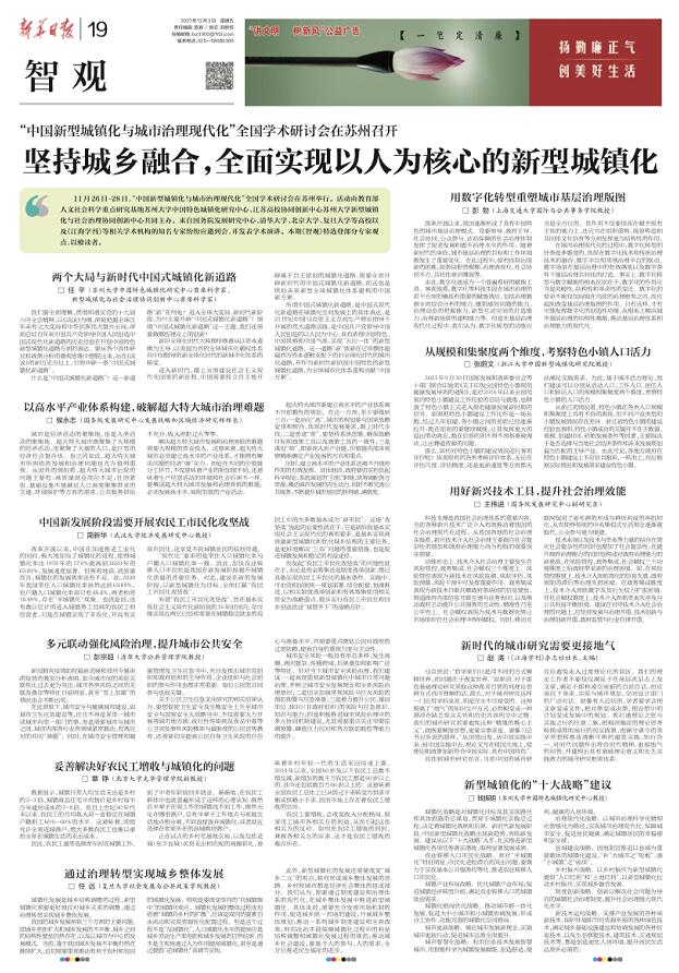 11月26日-28日,“中国新型城镇化与城市治理现代化”全国学术研讨会在苏州举行。活动由教育部人文社会科学重点研究基地苏州大学中国特色城镇化研究中心、江苏高校协同创新中心苏州大学新型城镇化与社会治理协同创新中心共同主办。来自国务院发展研究中心、清华大学、北京大学、复旦大学等高校以及《江海学刊》等相关学术机构的知名专家纷纷应邀到会,并发表学术演讲。本期《智观》特选登部分专家观点,以飨读者。