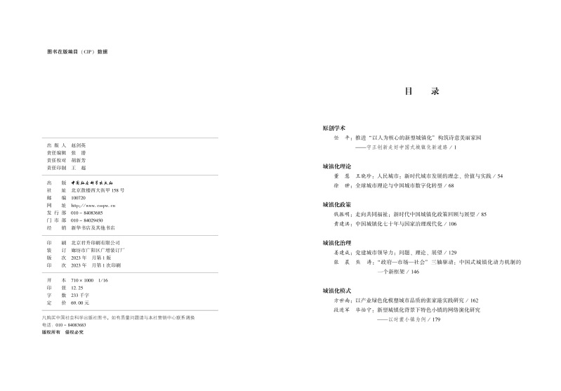 本辑为2023年第一辑(总第一辑),开设有原创学术、城镇化理论、城镇化政策、城镇化治理、城镇化模式等栏目。