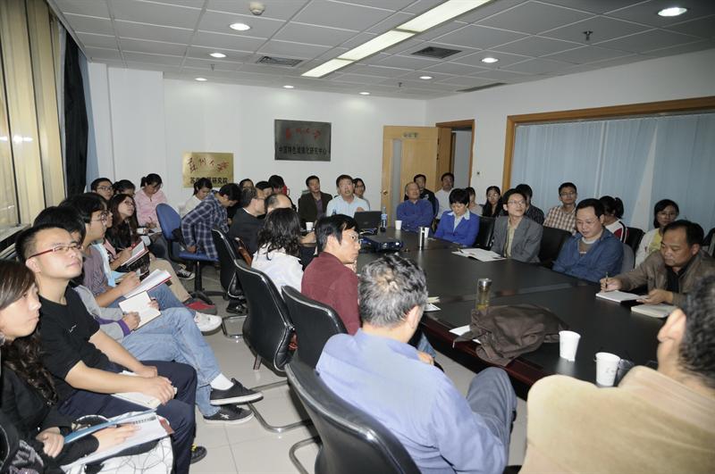 2010年10月18日(周一),台湾东吴大学哲学系主任 米建国教授、台湾东吴大学哲学系 李贤忠教授来我中心进行学术交流活动,并举行了城市社会语境下的知识与德性和先秦名辩学的学术讲座,二位教授的精彩演讲博得阵阵掌声,在互动环节,双方的就两岸的哲学话题进行多角度的讨论,并商谈了进一步交流的方式、方法。