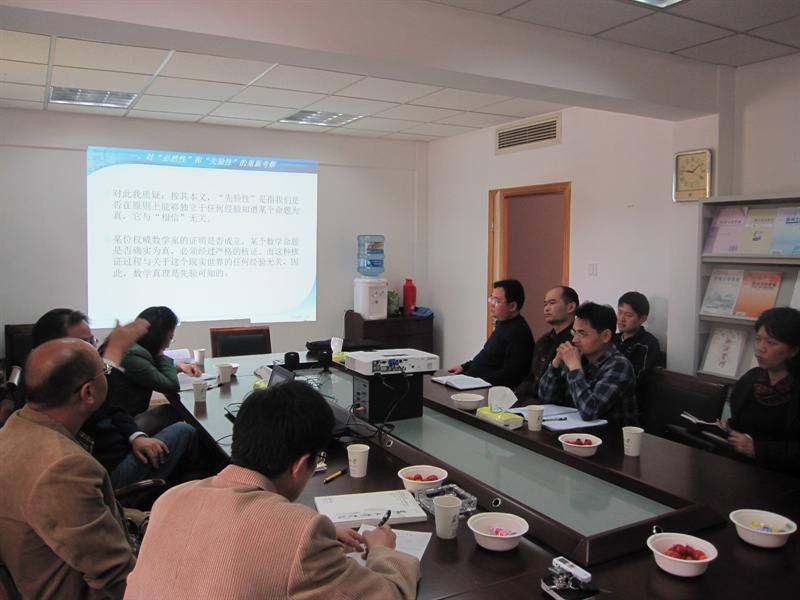 2011418,中国特色城镇化研究中心系统论坛(之三十三)在子实堂苏州大学学报编辑部会议室举行,北京大学陈波教授作了题为“存在‘先验偶然’命题和‘后验必然’命题吗——对克里普克知识论的批评”的学术报告,苏州大学陈忠、朱建平、郭世平、邢冬梅、庄友刚、朱耀平、王新水以及哲学系部分研究生参与了本论坛。