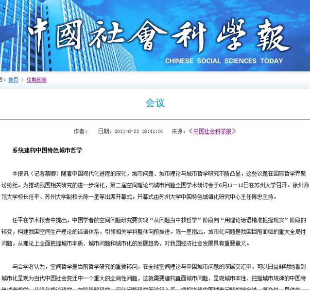 诸多媒体报导我中心举办的第二届“空间理论与城市问题”学术研讨会