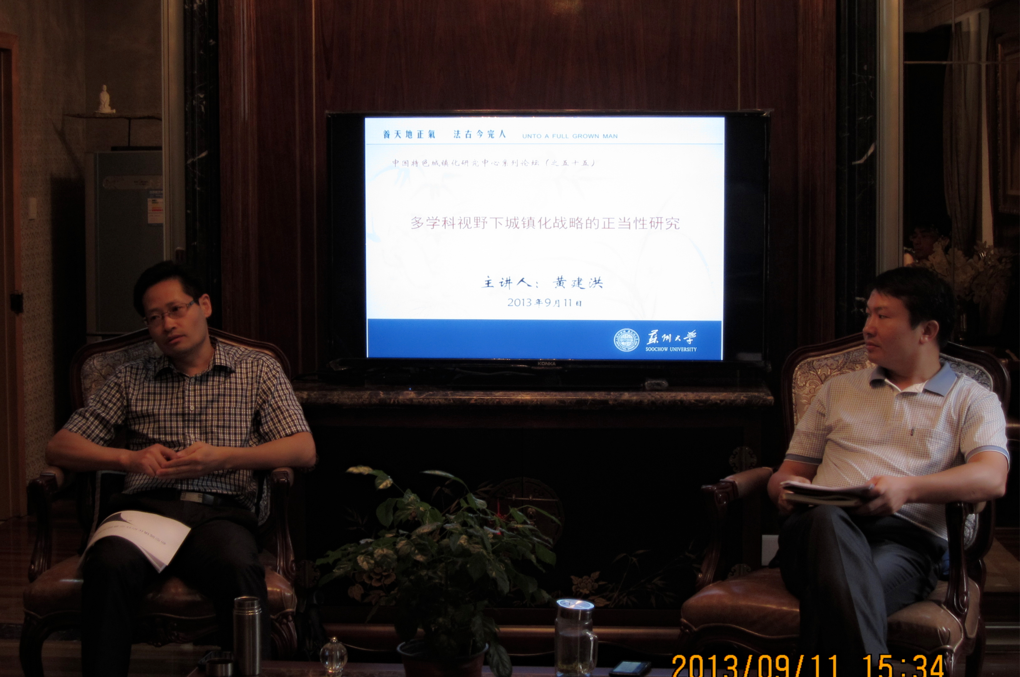 2013年9月11日下午,中国特色城镇化研究中心系列论坛(之五十五)“城镇化战略的正当性论证”在校本部子实堂沙龙室举行。政治与公共管理学院钮菊生教授、叶继红教授、黄建洪副教授、张晨副教授、胡小君副教授、人文社会科学院副院长余敏江副教授,以及部分研究生参加了此次论坛。论坛由黄建洪副教授主持。