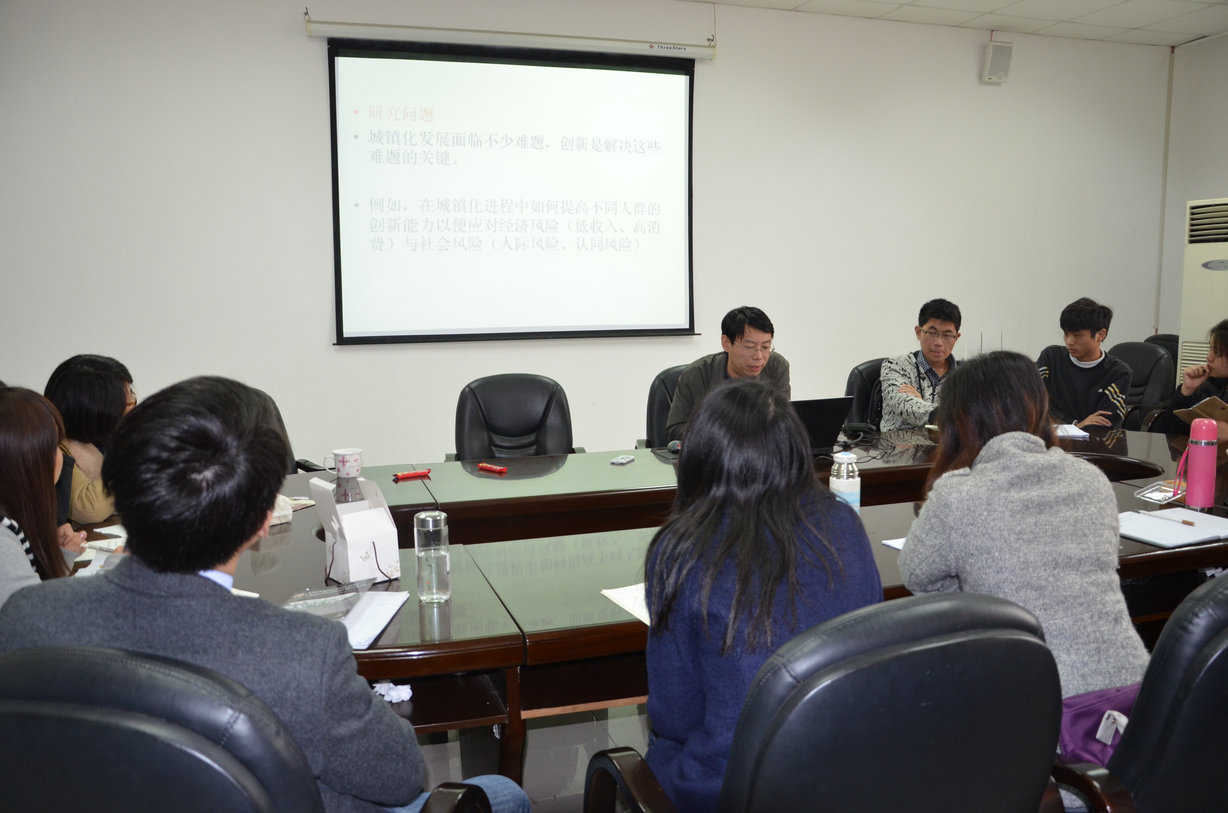 2013年11月22日下午2点,城镇化研究中心系列论坛(之六十六、六十七)“城镇优秀管理者的领导力特征分析”“城镇化风险的创新应对研究”在独墅湖校区1005幢5542教育学院研讨室举行。教育学院疏德明、李宏利两位老师主持了本次学术论坛。教育学院相关研究领域的老师与研究生参与了此次论坛。