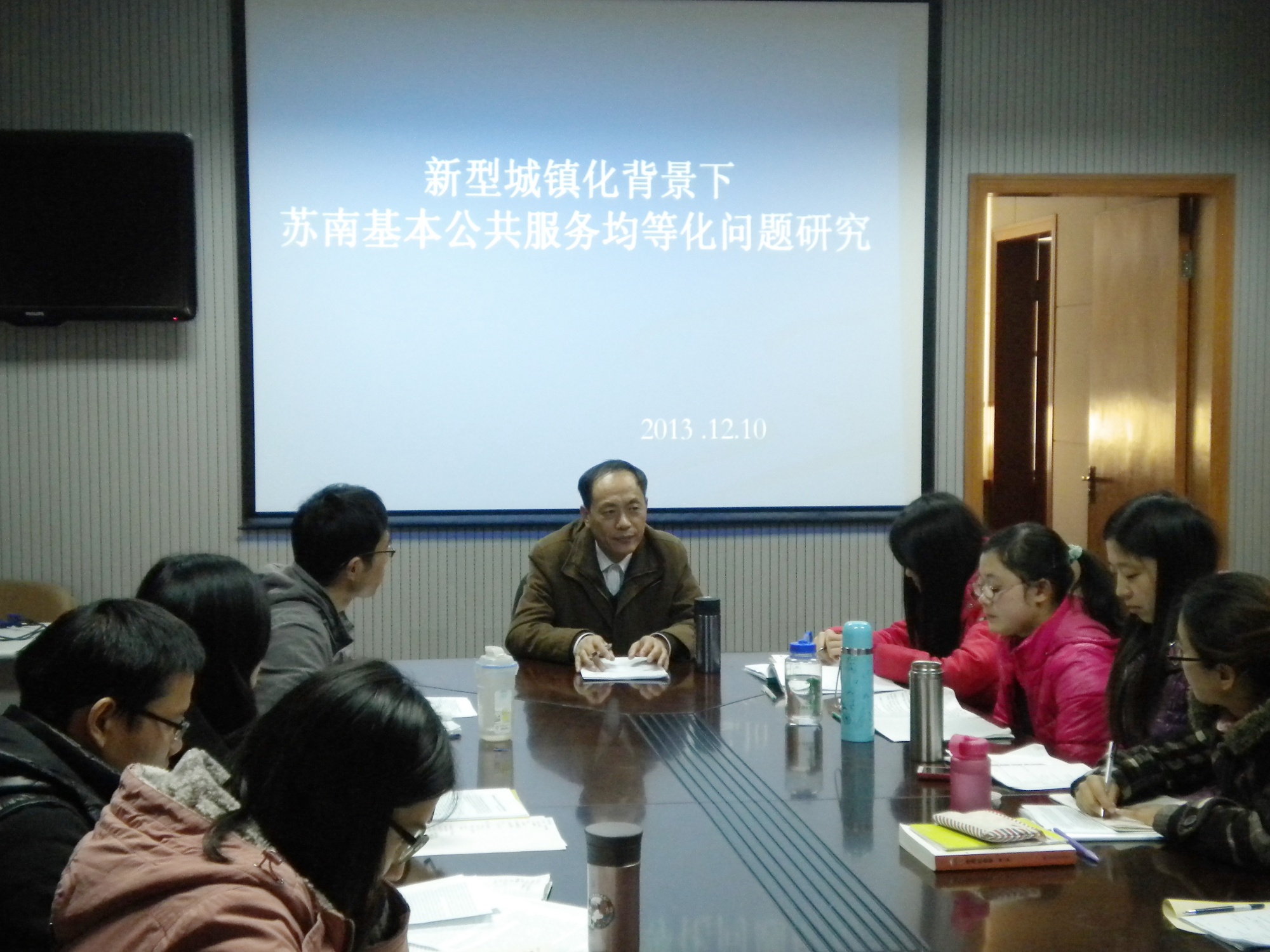 2013年12月10日下午,中国特色城镇化研究中心系列论坛(之七十五)“苏南地区城乡公共服务均等化研究”在社会学院社会学系实验室举行。社会学院部分教师及全体社会学专业研究生参加了此次论坛,论坛由城镇化中心张明教授主持。