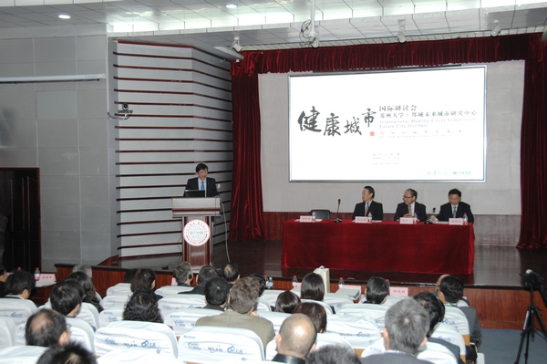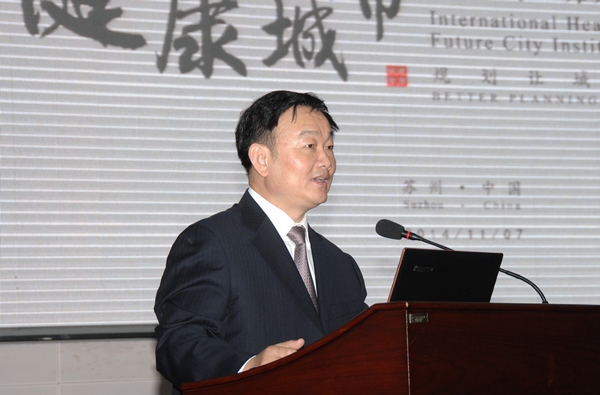 11月7日,由“苏州大学·邦城未来城市研究中心”、“苏州大学东吴智库”和“苏州大学中国特色城镇化研究中心”主办的“健康城市”国际研讨会在校本部学术报告厅召开。国务院卫生部原副部长殷大奎,原新加坡贸工部和教育部政务部长、苏州工业园区开发公司首任总裁曾士生,我校副校长袁银男,副校长田晓明出席研讨会开幕式。来自日本、新加坡、美国、香港等国家和地区的三十多位知名专家和学者,未来城市研究中心、东吴智库研究专家、城镇化中心研究员,新加坡邦城规划顾问公司员工,我校相关专业师生等近180余人共同参与此次研讨会。开幕式由田晓明主持。
