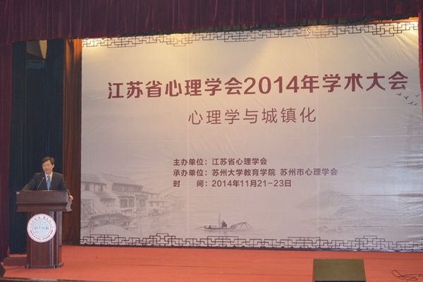 11月22日,江苏省心理学会2014年学术大会暨心理学与城镇化学术会议在我校召开。中国科学院心理研究所研究员、中国心理学会副秘书长、国际应用心理学协会秘书长韩布新教授,江苏省科学技术学会国际部李政部长,我校副校长、江苏省心理学会副理事长田晓明教授,江苏省心理学会荣誉理事长、南京师范大学郭亨杰教授,江苏省心理学会理事长、南京师范大学心理学院院长傅宏教授,江苏省心理学会副理事长、晓庄学院陶勑恒教授,江苏理工学院副校长、江苏省心理学会副理事长崔景贵教授,盐城师范学院副校长、江苏省心理学会副理事长戴秉荣教授,以及学会理事应邀出席开幕式。