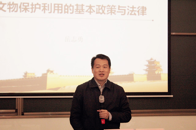 最后,岳志勇处长又结合土地革命时期、抗战时期、解放战争时期、新中国成立后国家领导人与机关领导人对文物保护的立法,说明中国共产党是中华优秀传统文化的忠实传承者和弘扬者。结合《文物保护法》,强调“保护为主、抢救第一、合理利用、加强管理的文物保护工作方针。对于这些文物保护的原则、体制、方针,与会师生深以为是。