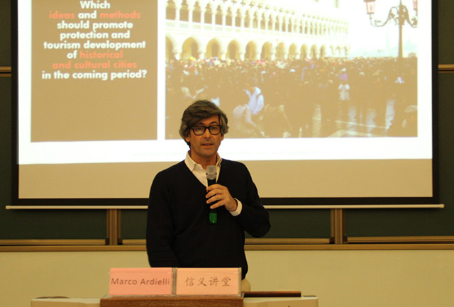 12月14日下午三点,由中国特色城镇化研究中心、金螳螂建筑学院联合举办的“Six Items for Action: Between Conservation and Mass Tourism——中国特色城镇化研究中心(第127期)” 在金螳螂建筑学院学术交流中心融会厅举行。论坛由意大利知名建筑师、规划师、历史建筑保护专家Marco Ardielli 教授主讲,建筑学院潘一婷老师主持,西交利物浦大学与我校一百余位师生参与论坛。
