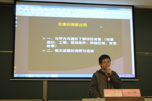 接下来,姚一麟老师再次提醒大家,在苗木组织调配时,一定要反复确认并合理安排人工、车辆、苗木等;在种植施工现场指挥调度时,要处理好安全、人工、苗木、流程、维护、垃圾清理与场地保护等方面的问题。姚老师指出,花境的养护管理也不容忽视,要建立起完善的养护日志并做好相关数据的记录,为日后长期养护打下基础,同时还指出了当今花境设计与施工可能发生的一些失误。最后,姚老师列举了三个上海花境的经典案例:闵行体育公园、辰山植物园、大华清水湾,逐个分析了每个案例的精恰之处,并客观地解释了某些不足,将花境设计中“虽由人作,宛自天开”的艺术手法呈现于大家面前。