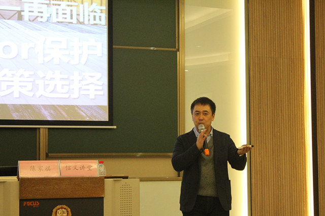 随后,陈家祺老师以幽默诙谐的语言讲述自身经历来启迪大家。从大学设计档修到当兵再到重新学习以及最后多次获奖,从毕业设计到实习项目再到工作业务以及工作转换,陈老师指出:在设计中,将设计理论与设计结合会产生新的设计理论。此外,陈老师还给同学们点明了自己所做项目的异曲同工之妙,并总结出从中巧妙提取元素的要点。