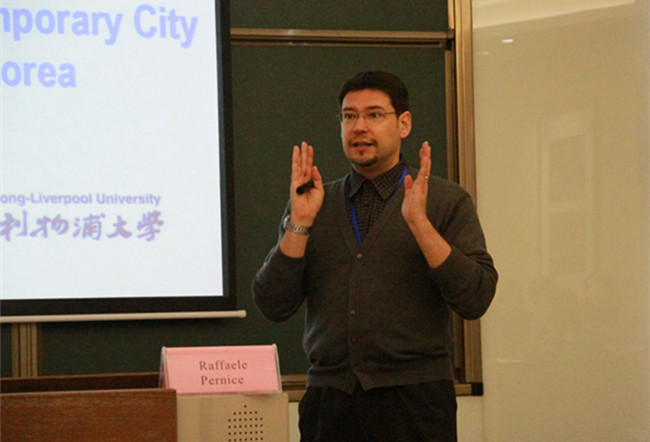 11月29日下午,由中国特色城镇化研究中心和金螳螂建筑学院联合主办的“亚太地区的城市化和建筑环境:中国、日本、韩国同时期的规划与设计——中国特色城镇化研究中心系列论坛(第164期)”在金螳螂建筑学院举行。论坛由西交利物浦大学城市规划与设计系讲师、建筑学博士、助理教授、欧盟甲级建筑师Raffaele Pernice主讲,金螳螂建筑学院城乡规划系系主任周国艳教授主持,近百余位师生参与。
