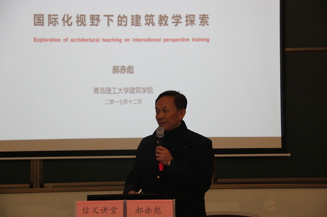 12月28日下午,由中国特色城镇化研究中心和金螳螂建筑学院联合举办的“国际化视野培养的建筑学教学探索——中国特色城镇化研究中心系列论坛(第170期)”在金螳螂学院学术交流中心举行。论坛由青岛理工大学建筑学院院长郝赤彪教授主讲,由金螳螂建筑学院建筑系主任申绍杰教授主持,近百余位师生参与。