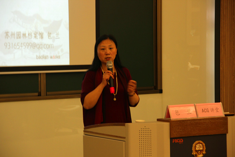 此次论坛,包馆长从苏州经典园林、世界文化遗产、园林档案馆、园林档案分类、馆藏特色与珍档、园林档案征集、园林档案编研、园林口述档案、档案文化活动等多个方面,为与会师生做了精彩的讲解,让大家对苏州园林档案馆有了更加充分的了解,并为大家在学习过程中的资料收集提供了广阔的平台。
