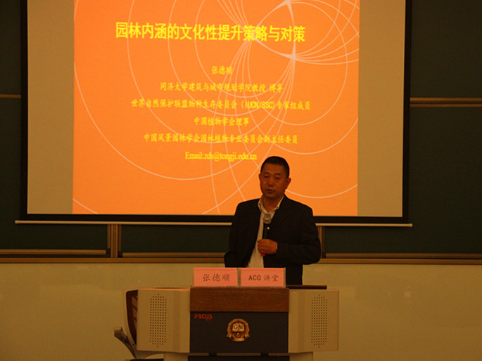 5月11日下午,由中国特色城镇化研究中心和金螳螂建筑学院联合举办的“园林内涵的文化性提升策略与对策——中国特色城镇化中心系列论坛(第182期)”在金螳螂建筑学院学术交流中心举行。论坛由同济大学建筑与城市规划学院教授、博士生导师、世界自然保护联盟物种生存委员会专家组成员张德顺教授主讲,建筑学院风景园林系副主任肖湘东副教授主持,园林专业百余位师生参与。