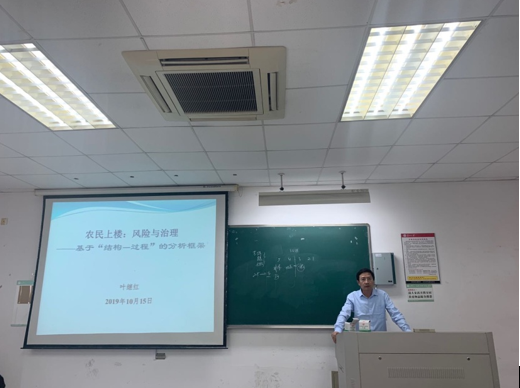 10月15日,第202期中国特色城镇化研究中心系列论坛在中国特色城镇化研究中心成功举办。此次论坛以农民上楼:风险与治理为主题,探讨城镇化发展过程中的风险及治理问题。论坛由苏州大学政治与公共管理学院叶继红教授主讲,苏州大学行政管理专业研究生参加了本次论坛。