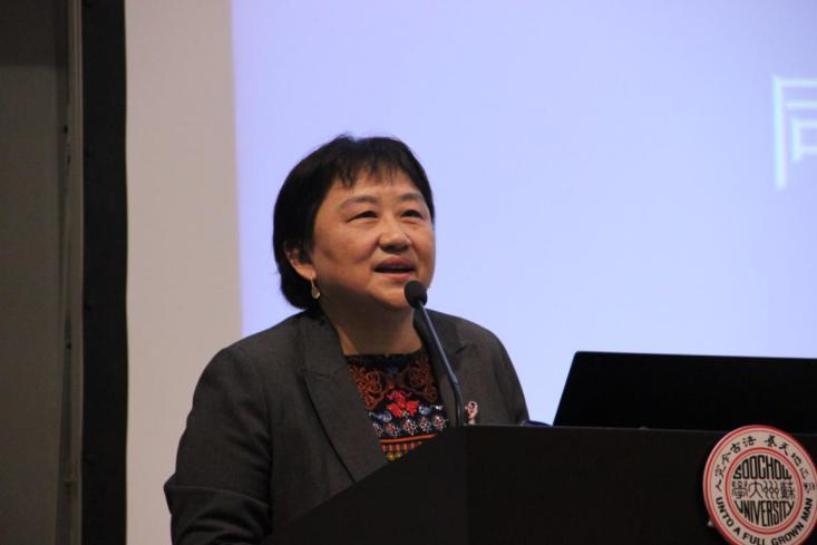 苏州大学金螳螂建筑学院党委书记陈国凤对与会人员表达了热烈的欢迎与问候,并简要介绍了苏州大学金螳螂建筑学院近几年发展取得的成果。