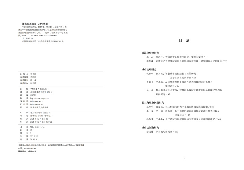 本辑开设有城镇化理论研究、城市治理研究、长三角城市问题研究、城市法制史研究等栏目。