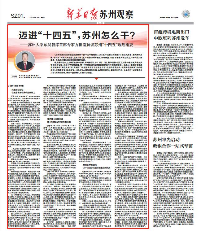 记者:您认为苏州“十四五”规划纲要透露了哪些发展优势?释放了哪些利好?