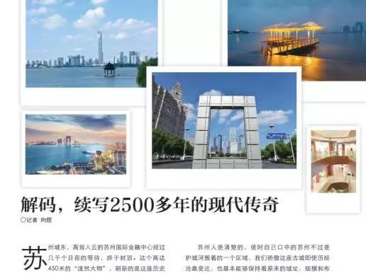 尔后二十多年,千年古城宛如新生。时光飞逝,今天的苏州已实现蜕变,涅槃而生。站在苏州看苏州,是沧海桑田的巨变;站在全国看苏州,是快速发展的典范;站在世界看苏州,是谱写了一段最靓丽的现代传奇。