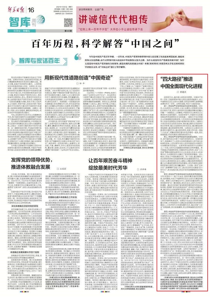 4月20日,《新华日报》刊载苏州大学中国特色城镇化研究中心研究员黄建洪教授观点文章,文章从中国共产党与中国现代化的革命路径、建设路径、改革开放路径和新发展路径四个阶段深入分析,探究中国共产党领导中国人民走上中国特色社会主义现代化道路,取得一百年辉煌成绩的伟大历程。