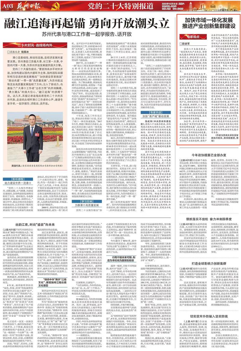 问:面向未来,苏州该如何从中汲取智慧力量,让党的二十大精神在苏州落地生根、见行见效呢?
